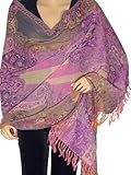 Jamavar Shawls are a legend in itself - famous & adored for their intricate weaves. Painstakingly hand loomed Jamavars are hot fashion since centuries. You are looking at a very sophisticated chic piece of accessory that is every woman's dream. This wool Jamavar Shawl is soft to touch and lightweight - a beautiful MUST HAVE accessory of refinement, sophistication, durability and luster. Intricately detailed floral & Paisley motifs in are elegantly intertwined and woven throughout - creating a warm & inviting blend of complimentary hues. Beautifully adorned with elaborate swirling Paisley motifs & petite flowers throughout, this shawl of enchanting beauty is to be treasured. This being a REVERSIBLE Shawl, the base colors & the motif colors are interchanged on the other side. Absolutely perfect for meetings, social gatherings, shopping adventures, special dinners & travel, this lightweight shawl will delight any eye and turn heads.Go for a dramatic makeover of your couch and this throw in your living room would become a conversational piece of art. You'll have to just stare at this dramatic piece for hours to believe the unbelievable!A perfect gift for your loved ones too! This exceptional find is rarely seen in stores across the U.S..../ Cashmere Multicolor Paisley Shawl Indian Purple Evening Wrap Kashmir Scarf / Evening Wraps